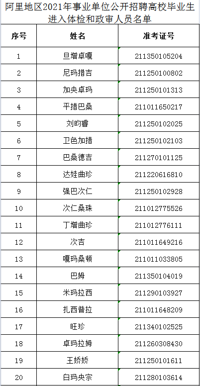 3.阿里地区2021年事业单位公开招聘高校毕业生进入体检和政审人员名单